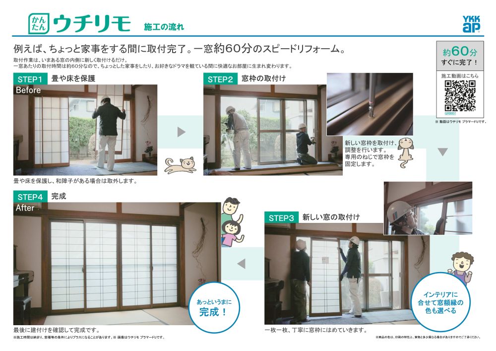 施工時間も1窓約一時間なので、あっという間に新しい窓にリフォームできます!